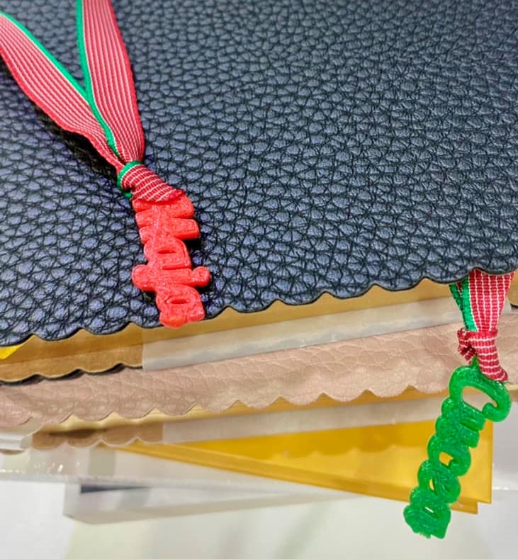 El marcapáginas va dentro de un botecito de cristal con tapón de corcho.